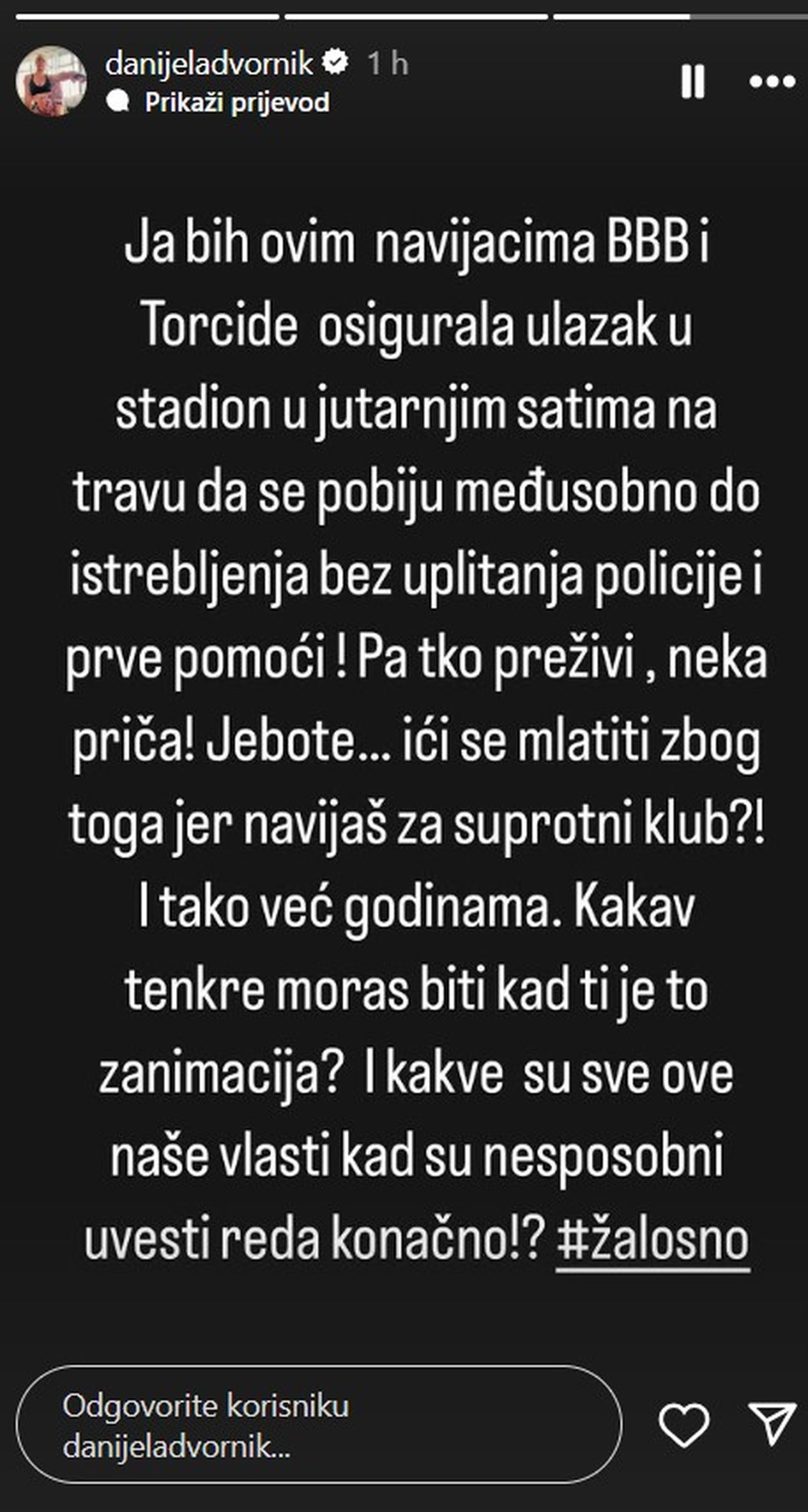 Ogorčena Danijela Dvornik jasno i glasno osudila nasilje u Splitu: ''I to ti je zanimacija? Žalosno''