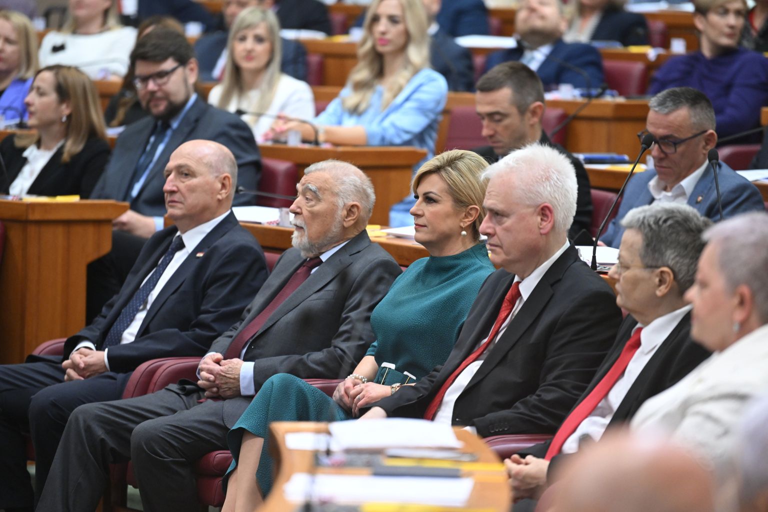 • Bivši predsjednici Mesić, Grabar-Kitarović i Josipović na konstituirajućoj sjednici Sabora Foto: DNEVNIK.hr