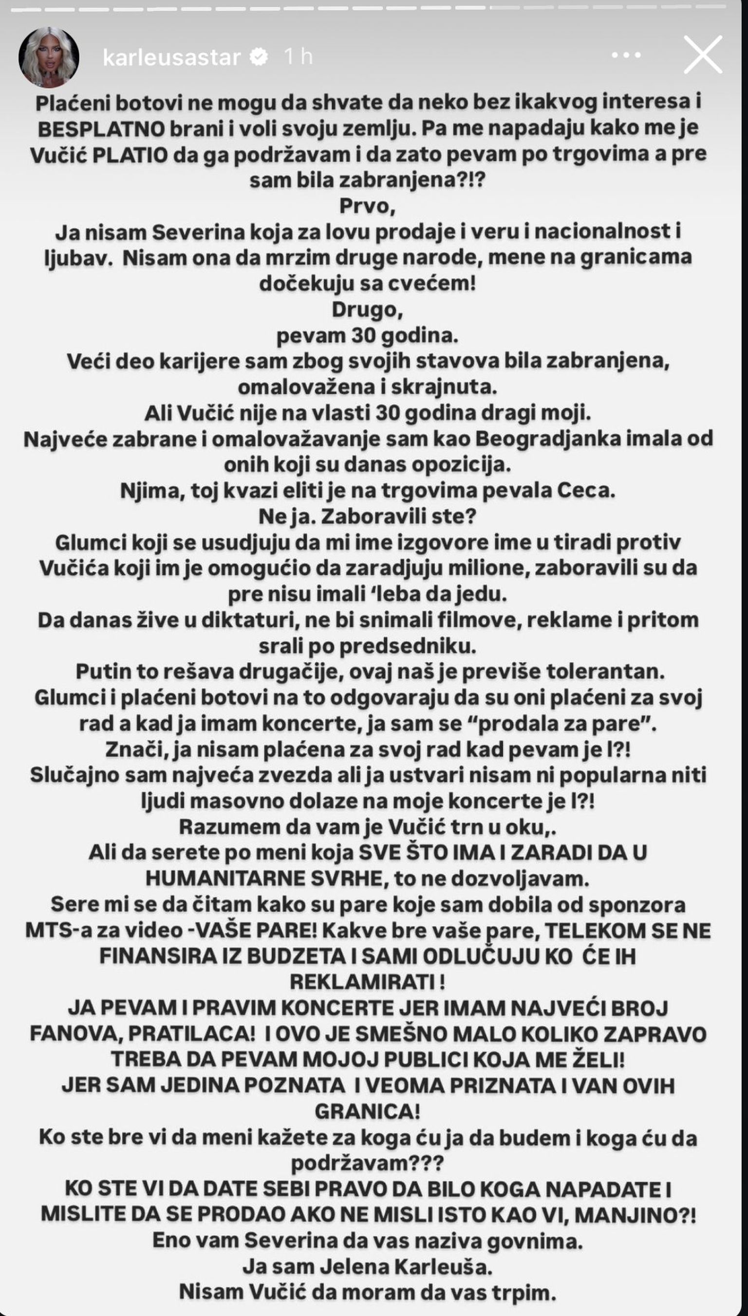 • Jelena Karleuša - 1 Foto: Instagram