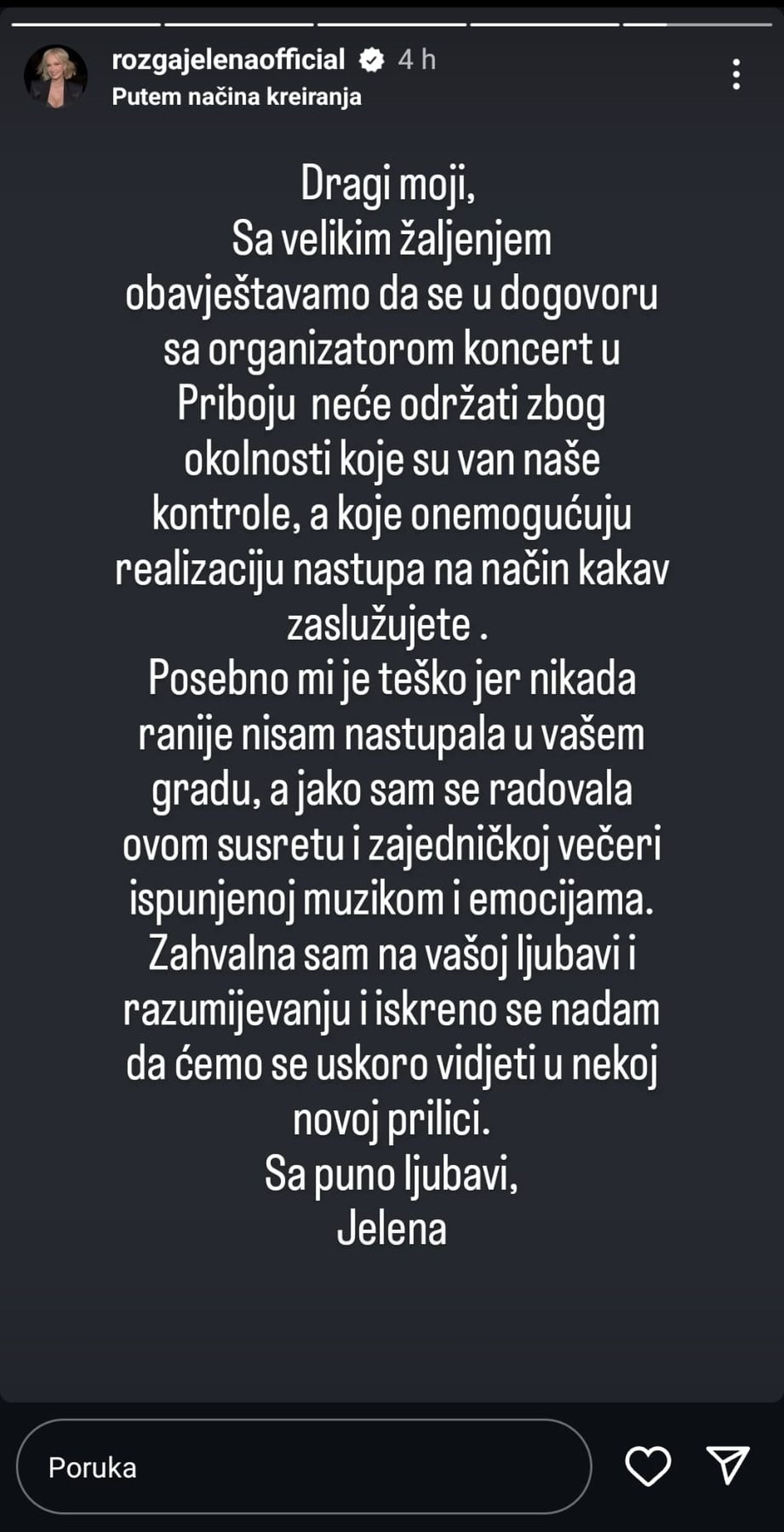 Razočarana Jelena Rozga fanovima obznanila tužnu vijest: ''Posebno mi je teško jer način kakav zaslužujete...''