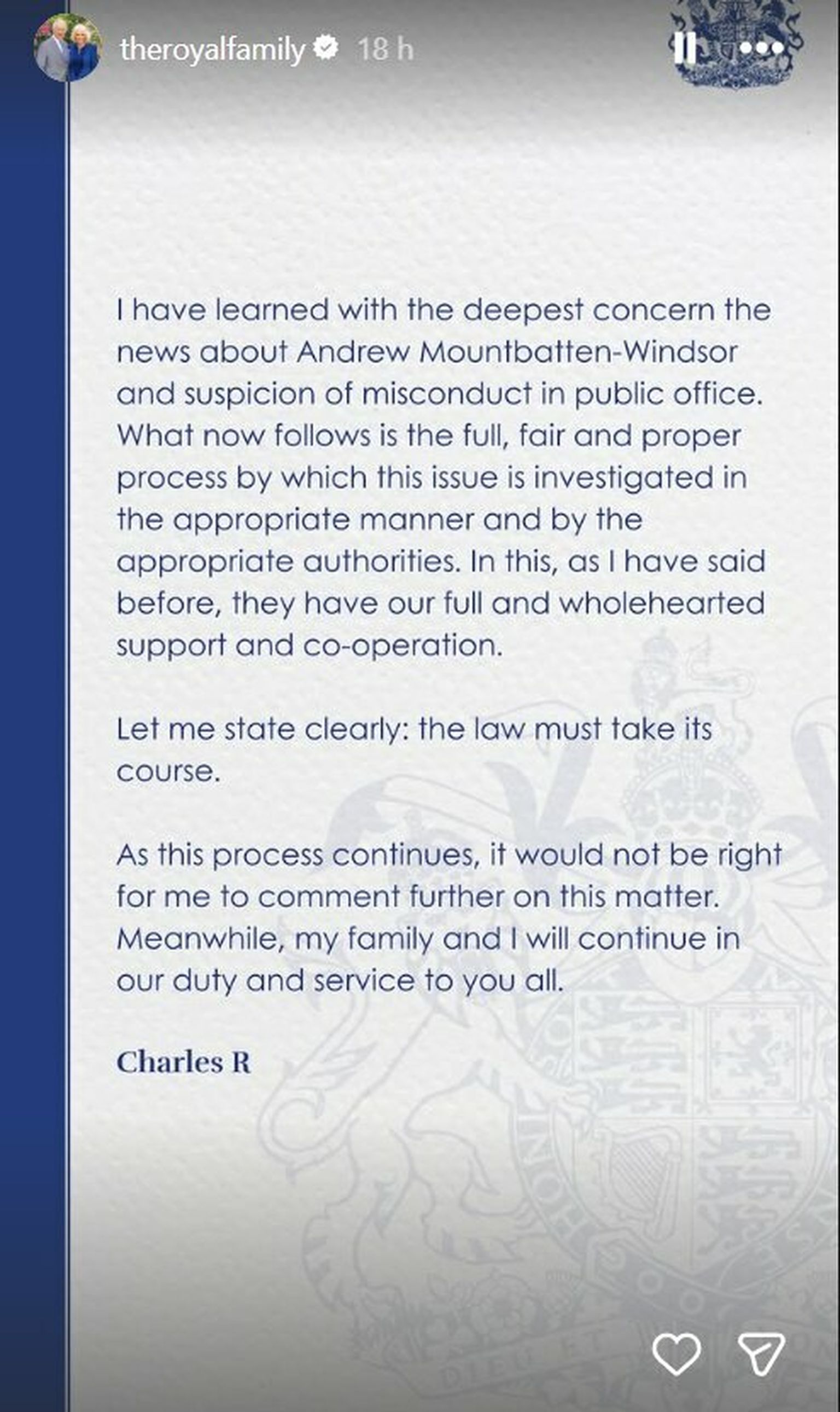 • Kralj Charles - izjava Foto: Instagram Screenshot