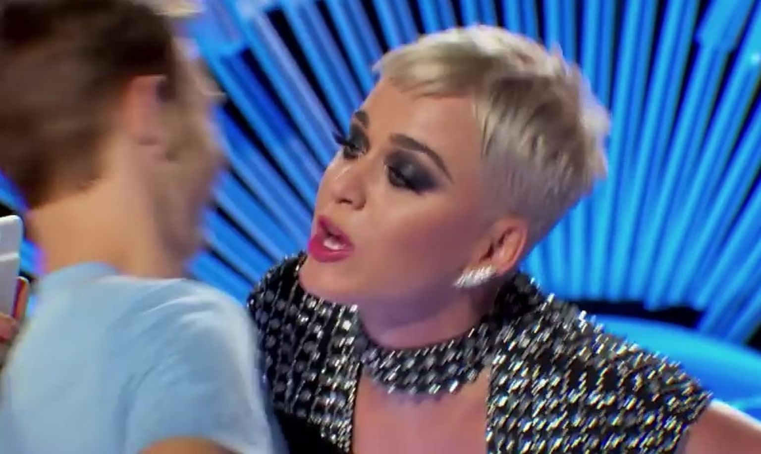 Katy Perry se tijekom snimanja dogodila nezgoda s gornjim dijelom outfita, skrivala se jastukom: "Ovo je obiteljski show..."